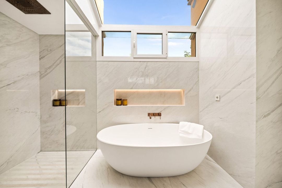 Het penthouse biedt drie prachtig ontworpen slaapkamers met en-suite badkamers, elk geïnspireerd op rustgevende mediterrane tinten, wat een kalme en ontspannende sfeer creëert voor zowel bewoners als gasten. De master bedroom beschikt over een royale inloopkast, die uitzonderlijke opbergruimte en een luxueuze dressing-ervaring biedt.