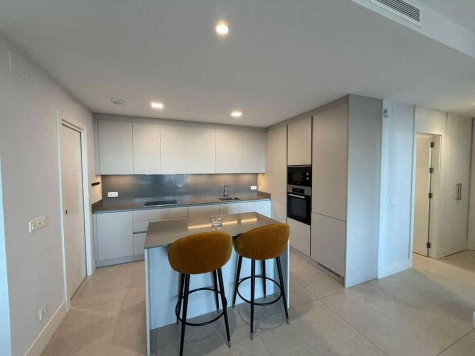 The modern designer kitchen is fully equipped with high-quality appliances and premium finishes, combining style and functionality.