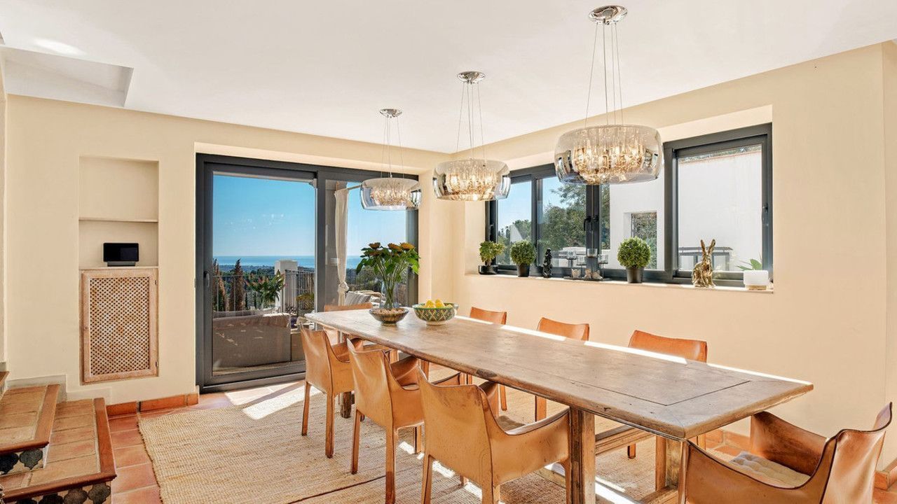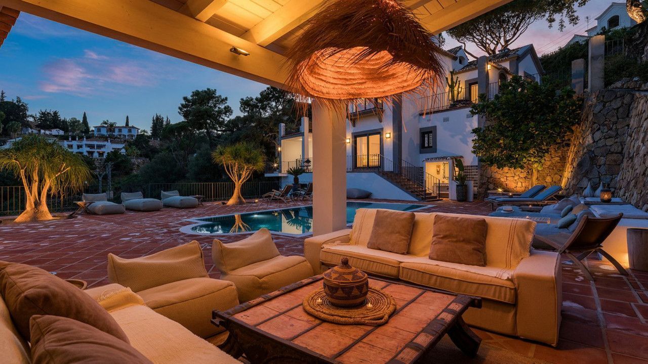 Deze villa in Andalusische stijl is volledig gerenoveerd met gebruik van de nieuwste hoogwaardige materialen en afwerkingen. Geen detail werd over het hoofd gezien om te zorgen voor een naadloze mix van tijdloze charme en hedendaagse elegantie.