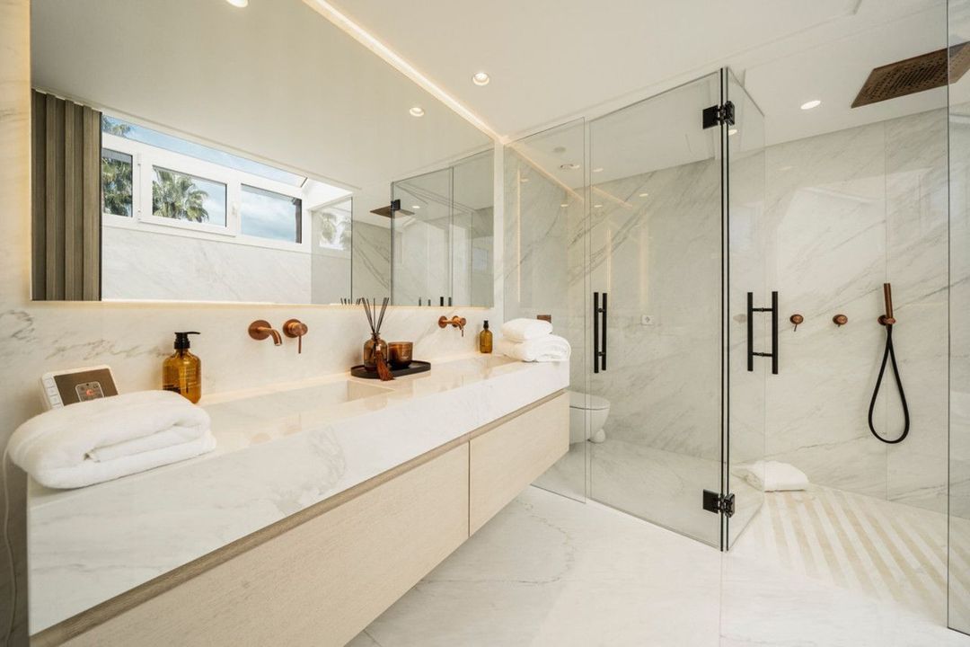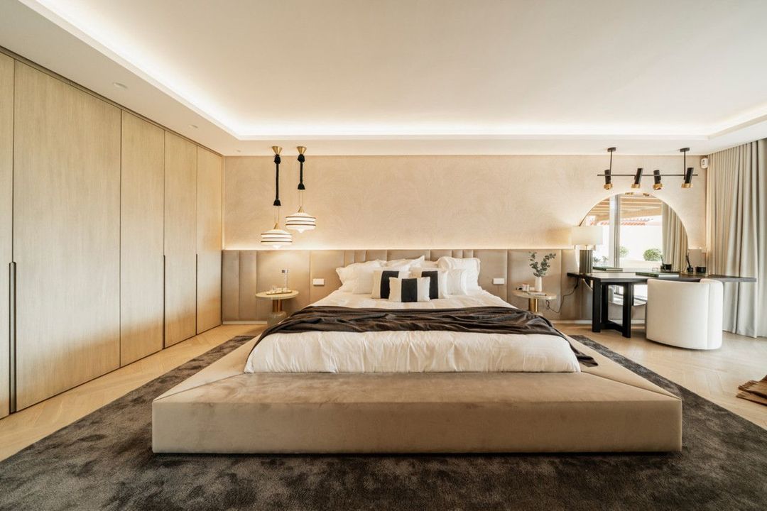 Het penthouse biedt drie prachtig ontworpen slaapkamers met en-suite badkamers, elk geïnspireerd op rustgevende mediterrane tinten, wat een kalme en ontspannende sfeer creëert voor zowel bewoners als gasten. De master bedroom beschikt over een royale inloopkast, die uitzonderlijke opbergruimte en een luxueuze dressing-ervaring biedt.
