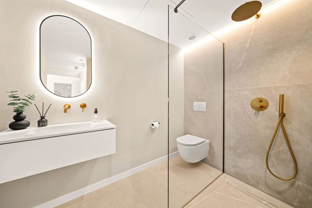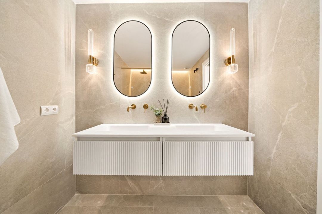 De master bedroom heeft directe toegang tot het terras en spectaculaire zeezichten. De twee extra slaapkamers beschikken elk over een eigen badkamer. Een gastentoilet en een discrete wasruimte bieden extra functionaliteit.