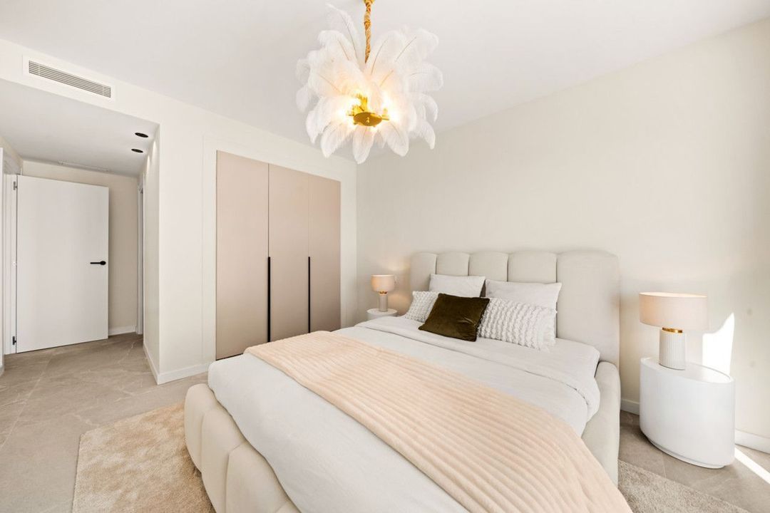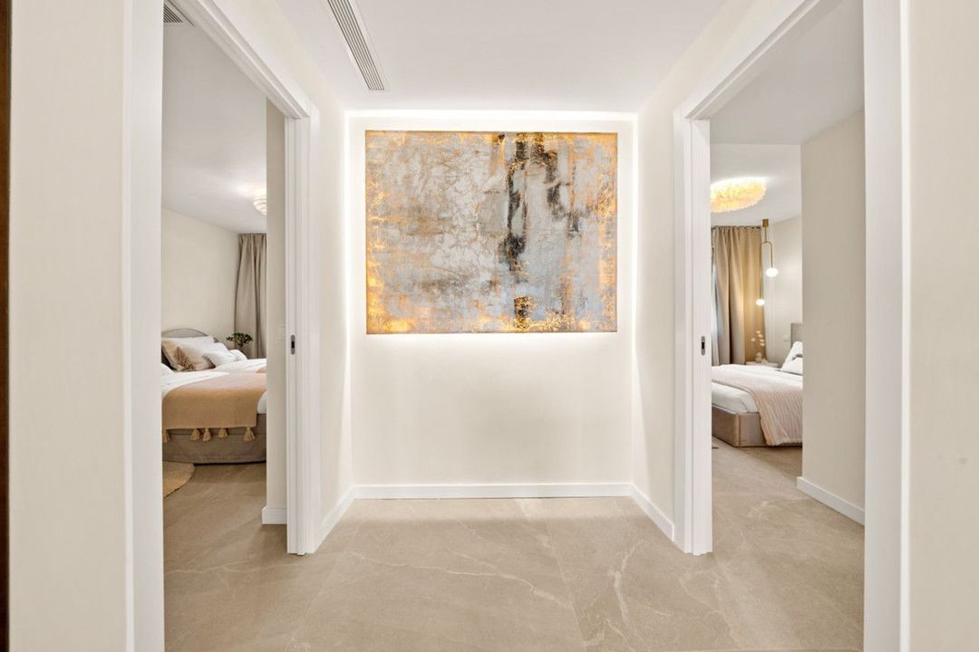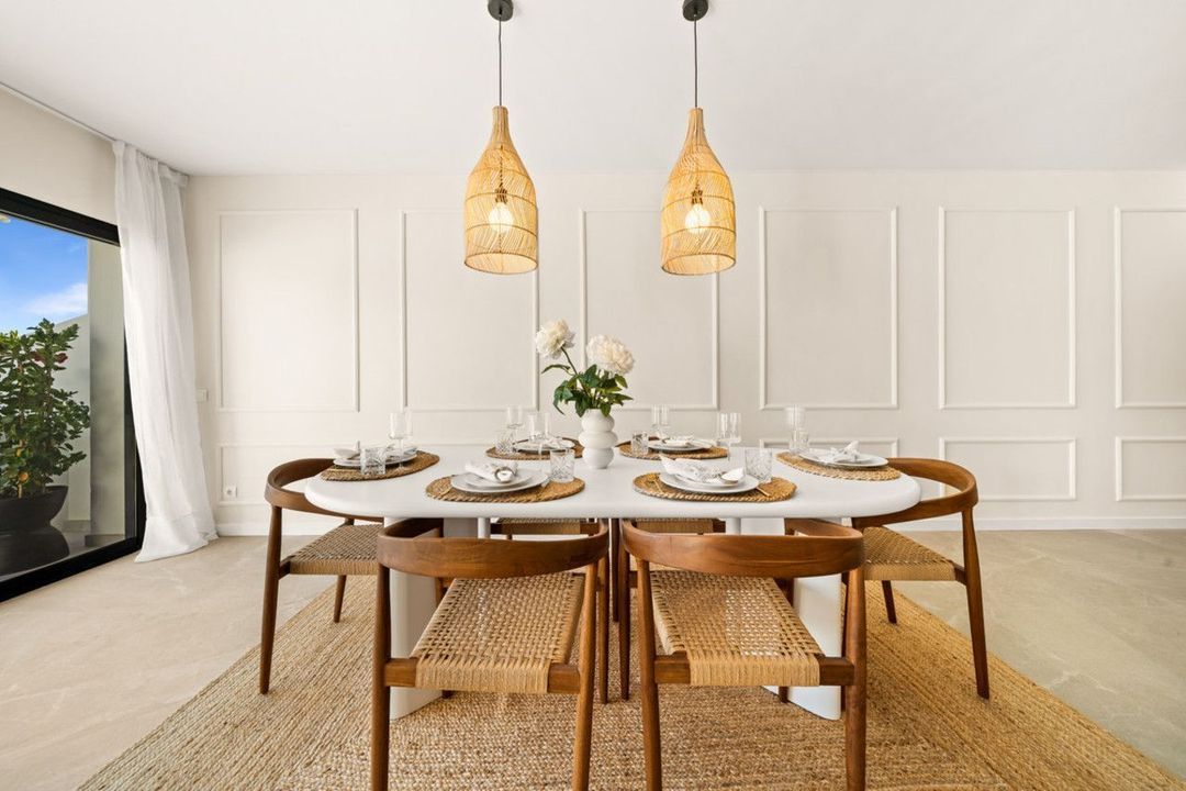 Met oog voor detail gerenoveerd, beschikt de woning over een lichte open indeling met aparte zones om te ontspannen, dineren en socialiseren. De volledig uitgeruste keuken heeft warme eiken details en een centraal eiland, en sluit naadloos aan op een groot terras. Vanaf hier geniet u van adembenemende uitzichten op de golfbaan en het meer, de La Concha-berg en de Middellandse Zee.