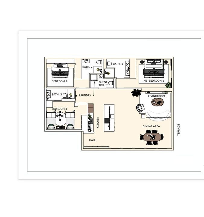 De master bedroom heeft directe toegang tot het terras en spectaculaire zeezichten. De twee extra slaapkamers beschikken elk over een eigen badkamer. Een gastentoilet en een discrete wasruimte bieden extra functionaliteit.