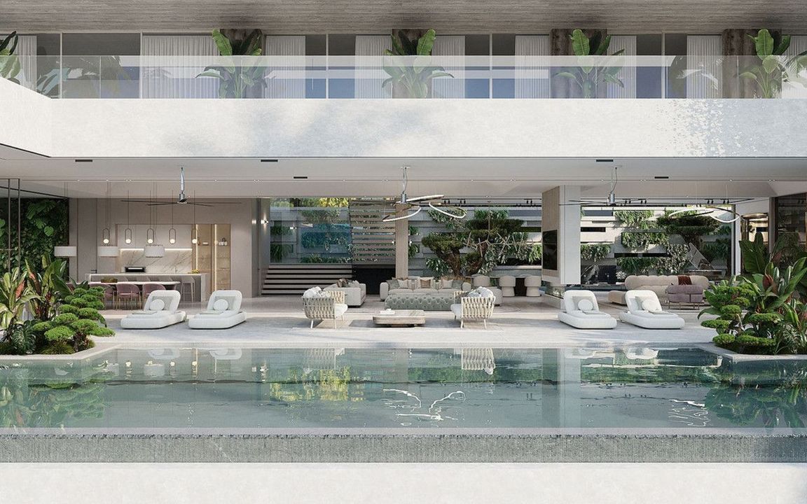 The finished villa will be distributed over three floors, with eight bedrooms (of which three are private suites with their own living and kitchen areas), 13 bathrooms (eight of which are part of ensuite, and two outdoor with outdoor showers), an outdoor pool and jacuzzi, an indoor pool and jacuzzi, a sauna, steam room, salon and medi-spa, and a gym! And there's still more! A bowling alley, cinema, beverage cellar, game room, library, chef's kitchen, show kitchen, living room, dining room, informal dining room, two English patios, a six-car garage, a three-car carport, a dedicated laundry room, a machine room, and a smart home equipped with audio throughout indoor/outdoor spaces! Plus, photovoltaic-powered water heating, underfloor heating, a rain catch system for irrigation, water recycling, and so much more!