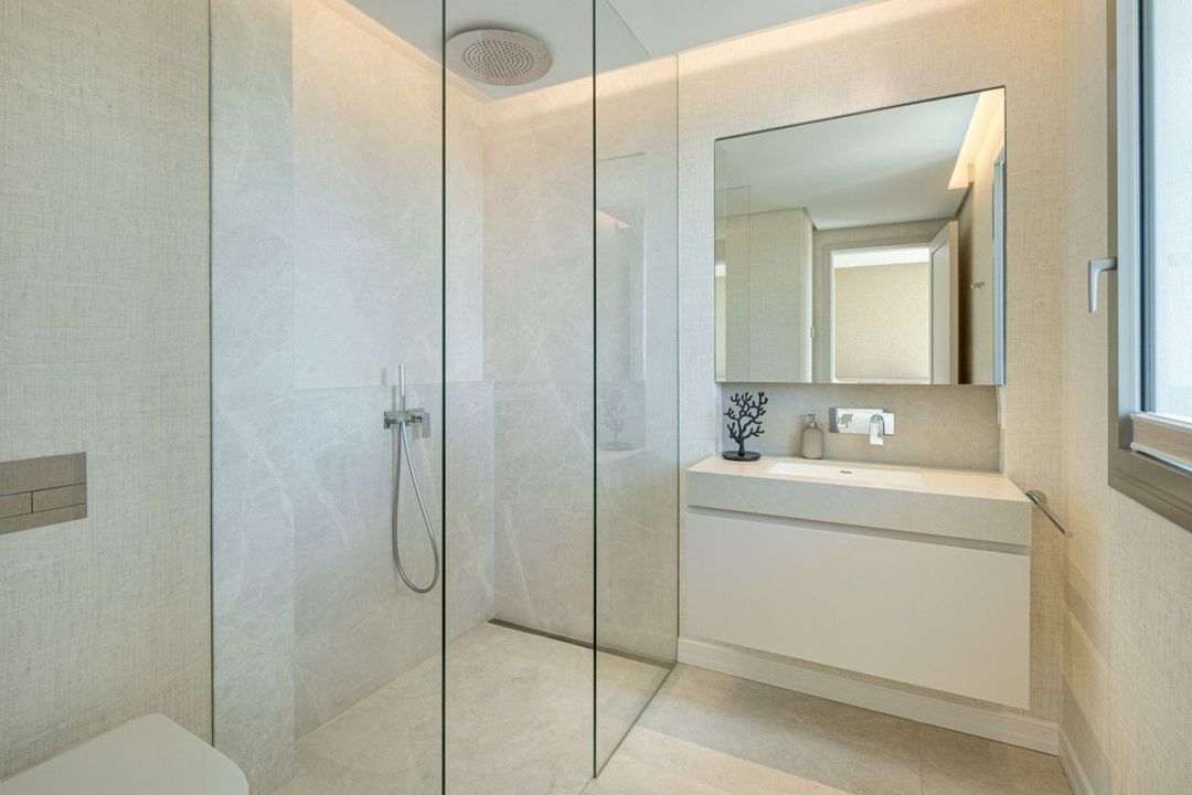 The ground floor opens onto a generous terrace with a sparkling pool and BBQ area, creating a versatile setting for relaxed family afternoons or hosting social gatherings. Thanks to the villa's southeast orientation, every level benefits from abundant natural light and panoramic views, ensuring a constant connection to the serene landscapes that surround the property. Each terrace and outdoor living space has been designed to maximize enjoyment of the climate, making it easy to transition between indoor comfort and open-air leisure.