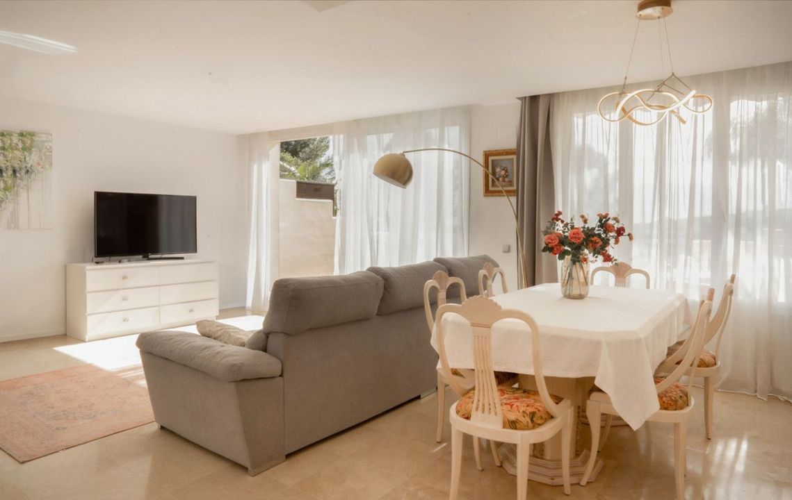 This bright and spacious 2-bedroom, 2-bathroom apartment offers comfortable living in a secure gated community. The property features a large 39 m² southwest-facing terrace overlooking landscaped gardens and the communal pool, perfect for outdoor dining, relaxing, and entertaining while enjoying natural light throughout the day.