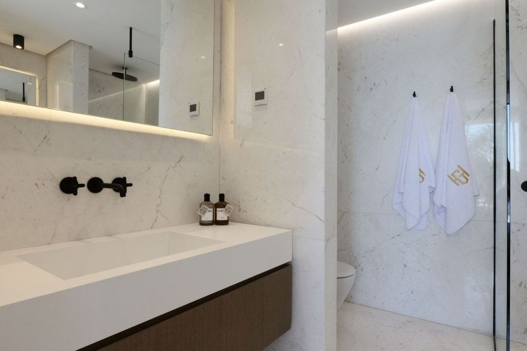 Boasting 7 spacious bedrooms and 8 beautifully designed bathrooms, the villa provides an ideal layout for large families, guests, or those seeking an opulent residence with ample privacy. Every space is bathed in natural light and furnished to the highest standards, ensuring a warm, inviting, and stylish atmosphere throughout.