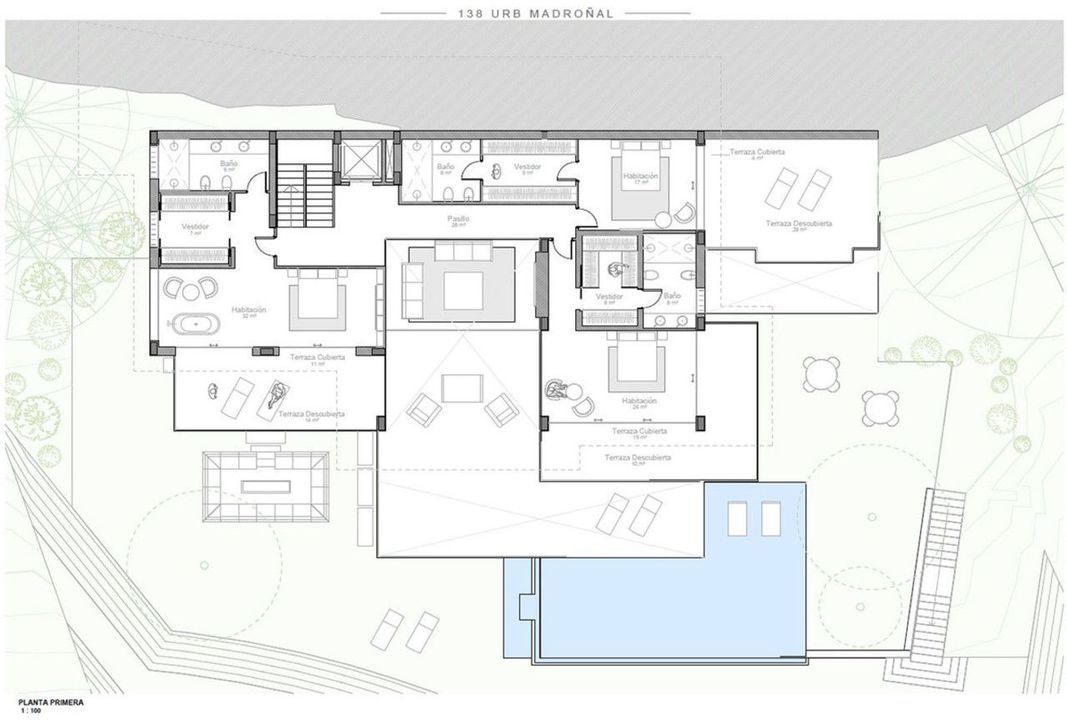 The plot is sold with a fully approved architectural project and building license for a contemporary villa with: