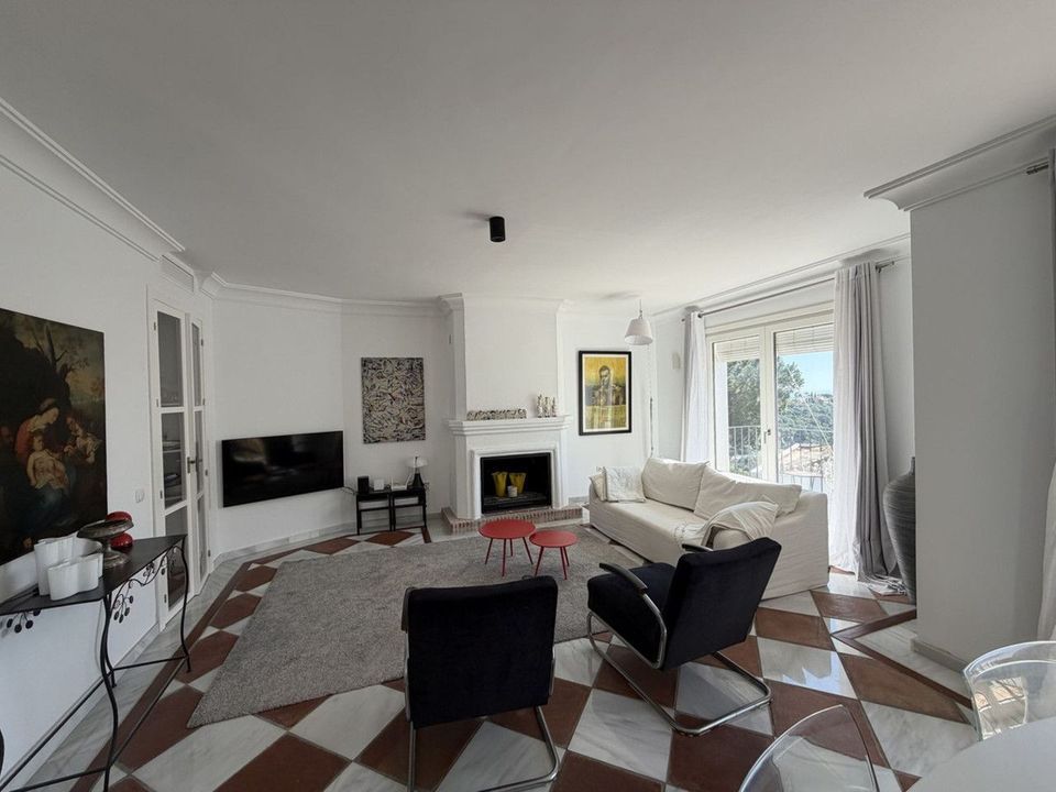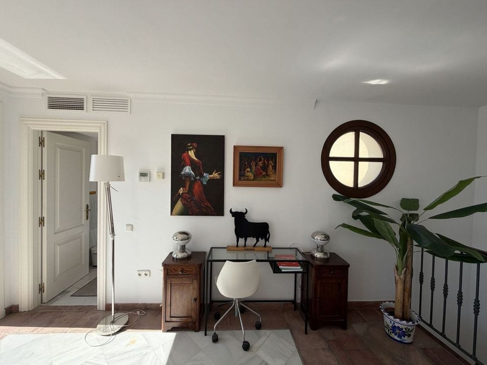 On the upper floor, you'll find the third bedroom, currently used as a lounge and workspace, offering flexibility to suit your needs. From here, you step out onto the spacious rooftop terrace, where you can truly enjoy the lifestyle this property offers. With panoramic views over Marbella, Puerto Banús, the sea, Gibraltar and even the Moroccan coastline, this is the perfect place to relax and watch the sunset.