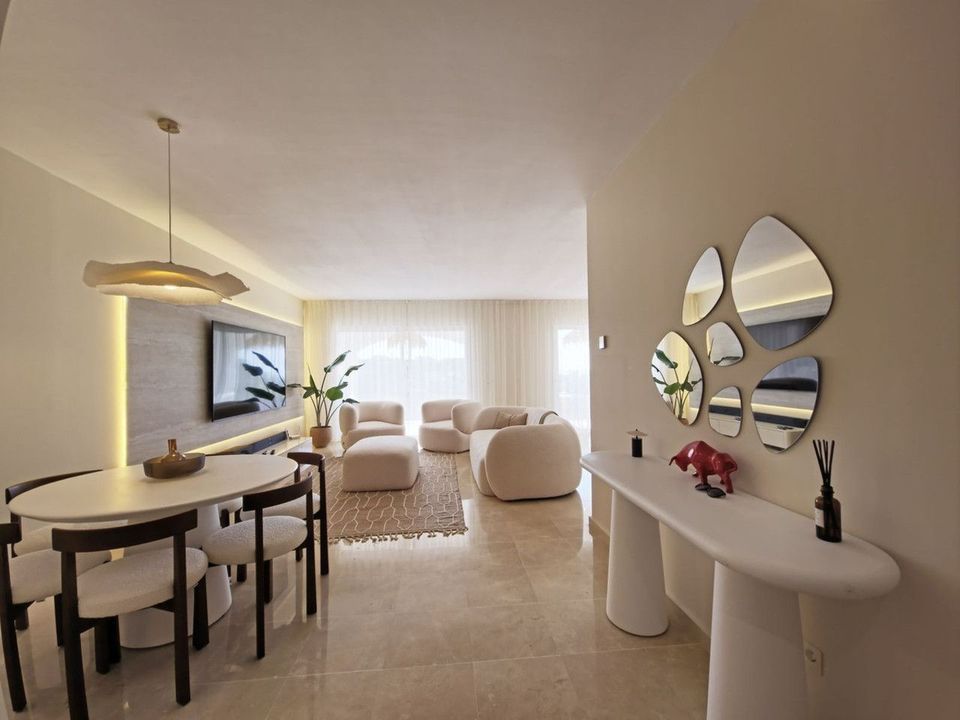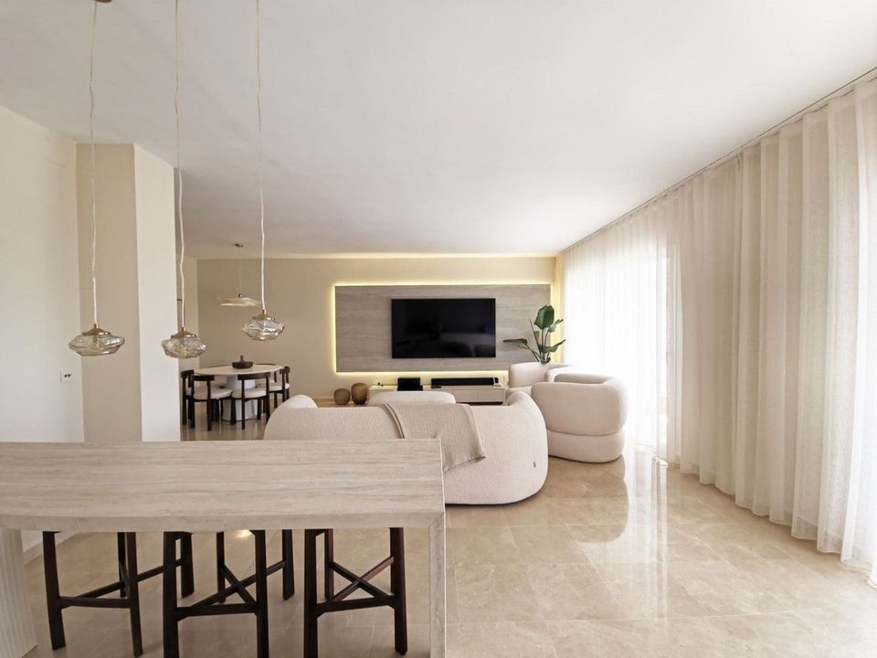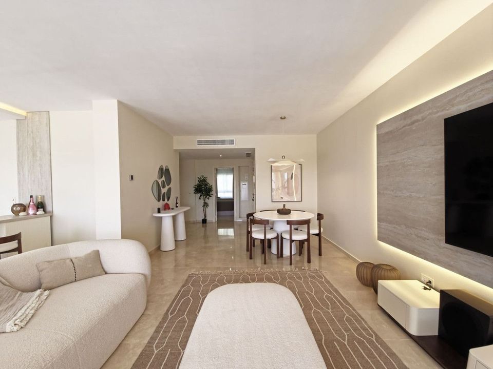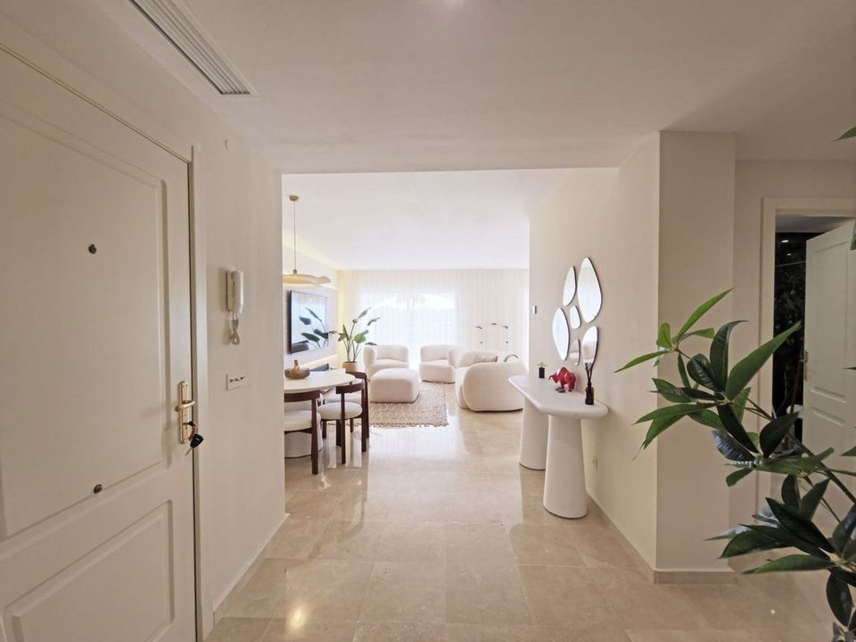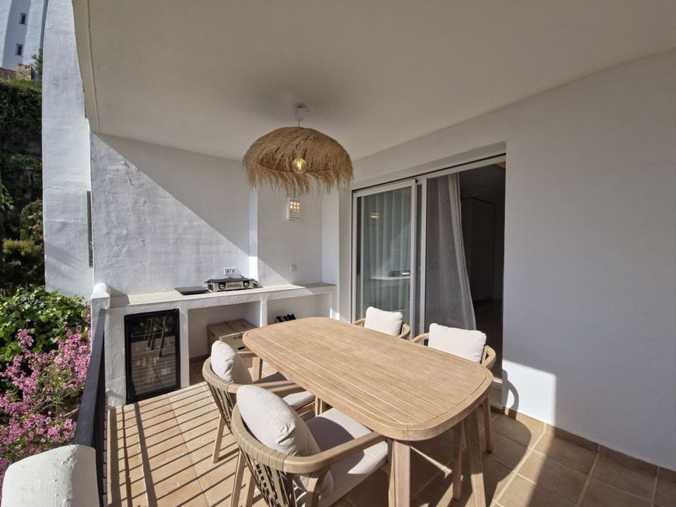 Bright and spacious 2-bedroom, 2-bathroom apartment set within the gated community of Altos de la Quinta, Benahavís, offering open views over the golf course, lake and the Mediterranean Sea.