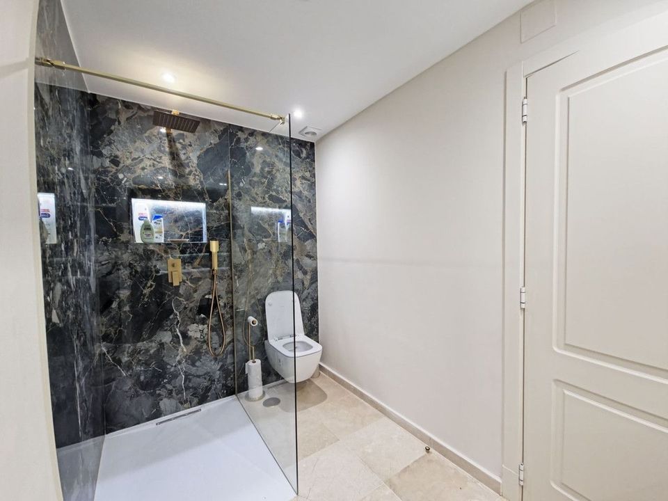 Finished to a high standard, the property features a large, bright covered terrace and a private parking space, visible directly from the bedroom. The urbanisation is well maintained, with landscaped gardens, an adult swimming pool and a separate children's pool, all within a lush green environment.