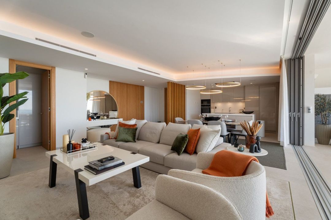 This first-floor residence enjoys breathtaking panoramic views across the Mediterranean Sea, Gibraltar and the Atlas Mountains, visible from the spacious private terrace and principal living areas. The apartment is located within a boutique block of only five residences and is a middle-end unit with just one neighbouring apartment, offering enhanced privacy and tranquillity.