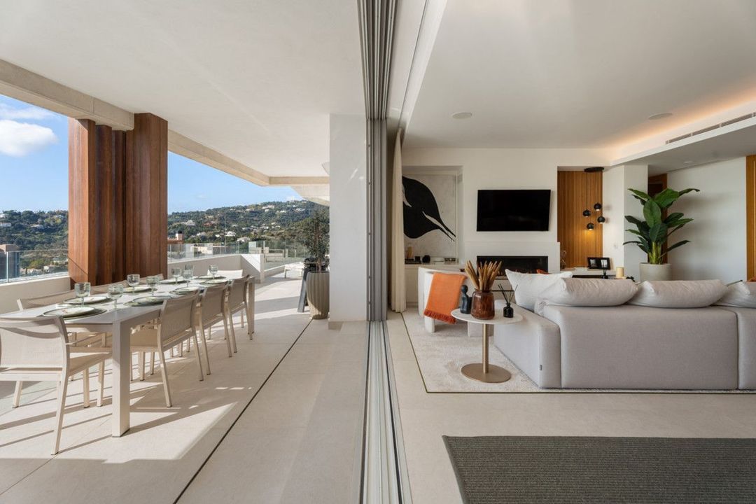 Accommodation includes three spacious bedrooms, led by a luxurious master suite with direct terrace access and west-facing views towards La Zagaleta. All bedrooms are fitted with individual safes, and the bathrooms are beautifully finished to a high standard.
