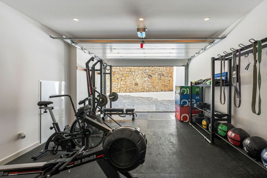 Het belangrijkste woonniveau is gericht op een open keuken, woon-en eetkamer, die direct uitkomt op een overdekt terras voor het zwembad. Dit maakt de ruimte gemakkelijk te gebruiken van dag tot dag en werkt goed voor binnen en buiten wonen. Er is ook achteringang die rond het pand loopt. Een lift verbindt alle verdiepingen van het huis.