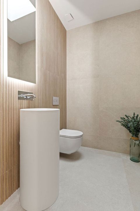 The property is distributed across three floors and features a bright living room with an open-plan kitchen and direct access to the terrace, garden, and private pool. It offers six bedrooms, all with en-suite bathrooms spread across all floors, as well as two guest toilets. The master bedroom is located on the first floor and includes a large walk-in closet. There is also a spacious open-plan basement, a versatile blank canvas ideal for creating a gym, cinema room, or entertainment area, tailored to the future owner's needs.