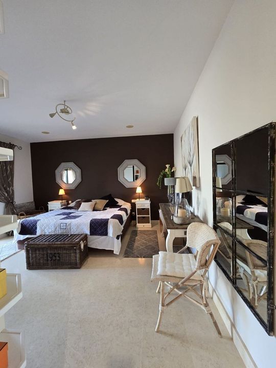 All rooms have direct access to a spacious 114 m² terrace, with views of the mountains, the swimming pool and the golf course.