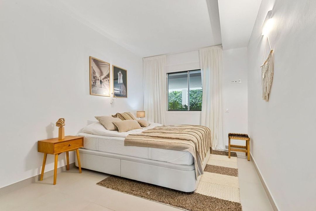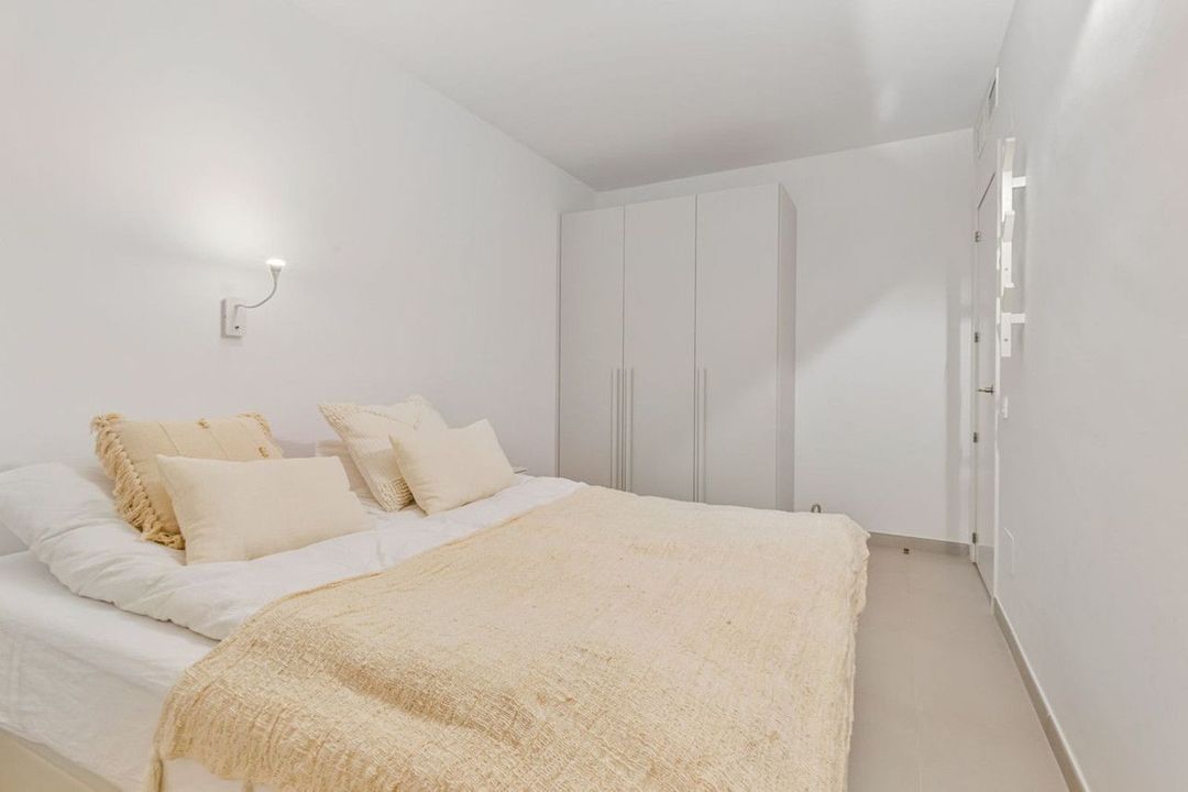 Less than a 10-minute stroll from the beach, this beautifully furnished three bedroom, two bathroom apartment offers a modern open plan layout. The interior is carefully styled with a calm and elegant feel, creating a home that is both comfortable and welcoming. One of the bedrooms features an en suite bathroom and direct access to the terrace, allowing you to step outside and enjoy the outdoor space from the privacy of your own room.