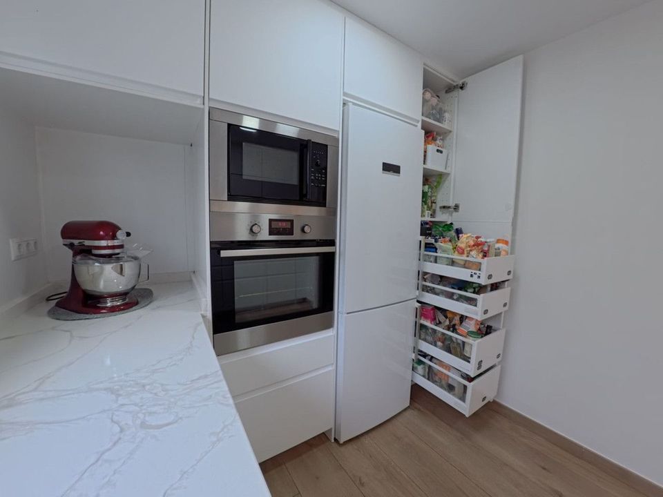 Kitchen renovated in 2024, including new countertops, cabinets, cooking hob, refrigerator, and dishwasher, all Bosch brands.