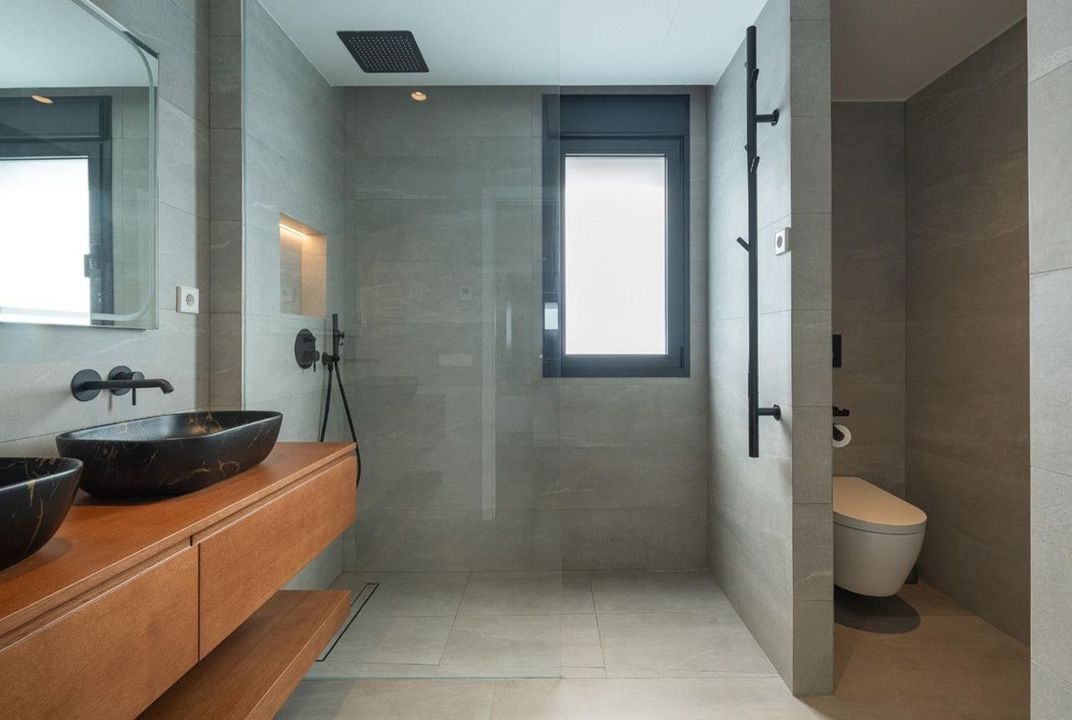 With 900 m² built on a 2,200 m² plot, the property offers spacious, light-filled interiors seamlessly connected to the outdoors. The villa features five en-suite bedrooms, designed to ensure comfort, elegance, and complete independence for family members and guests alike.