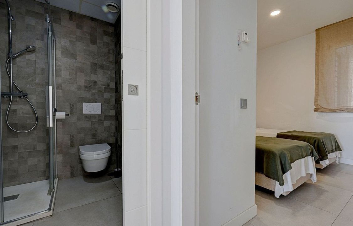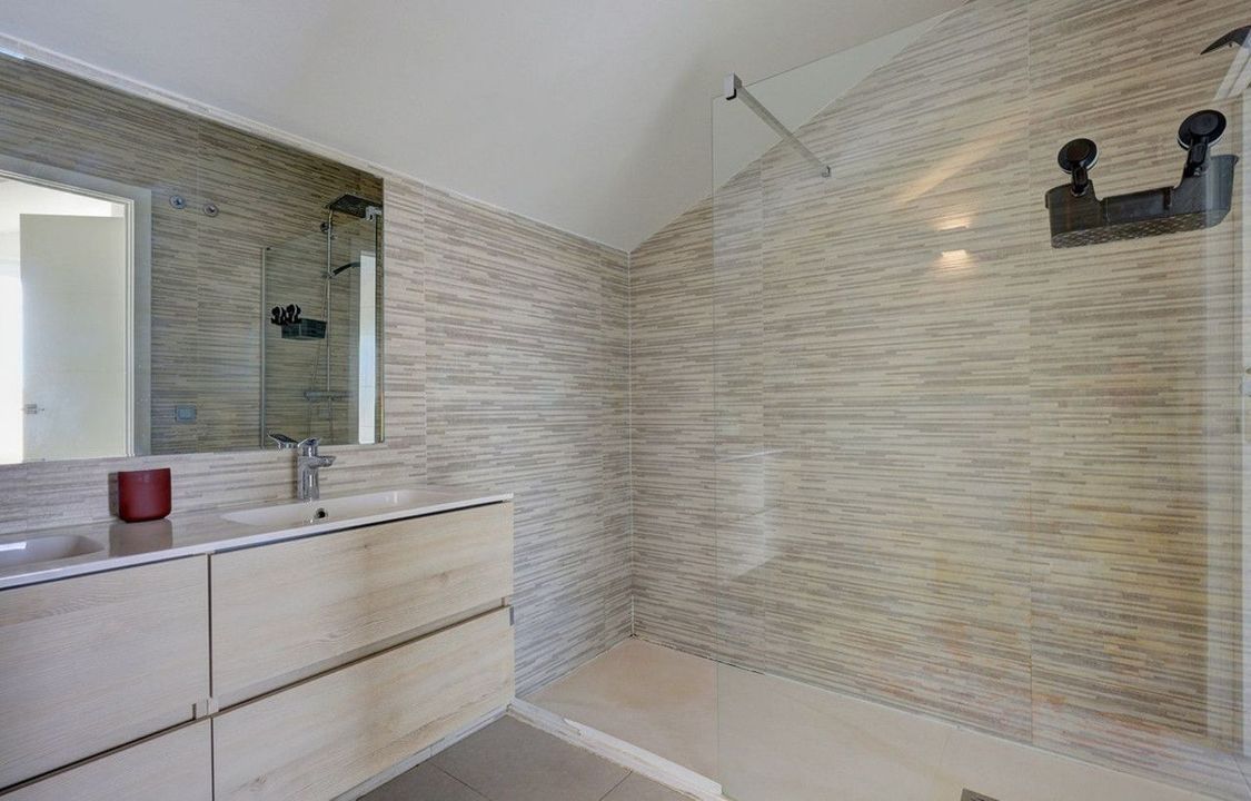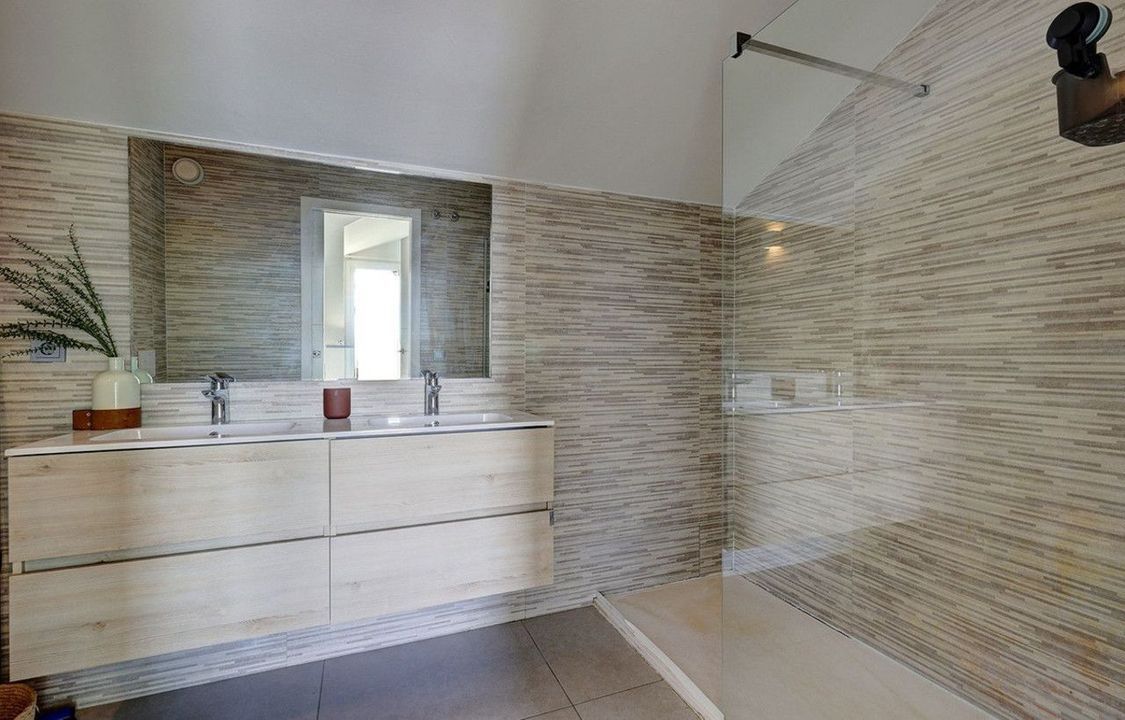 On the upper level there is the main bedroom with an en-suite bathroom and access to a spectacular rooftop terrace with a private jacuzzi and breathtaking views of the Mediterranean.