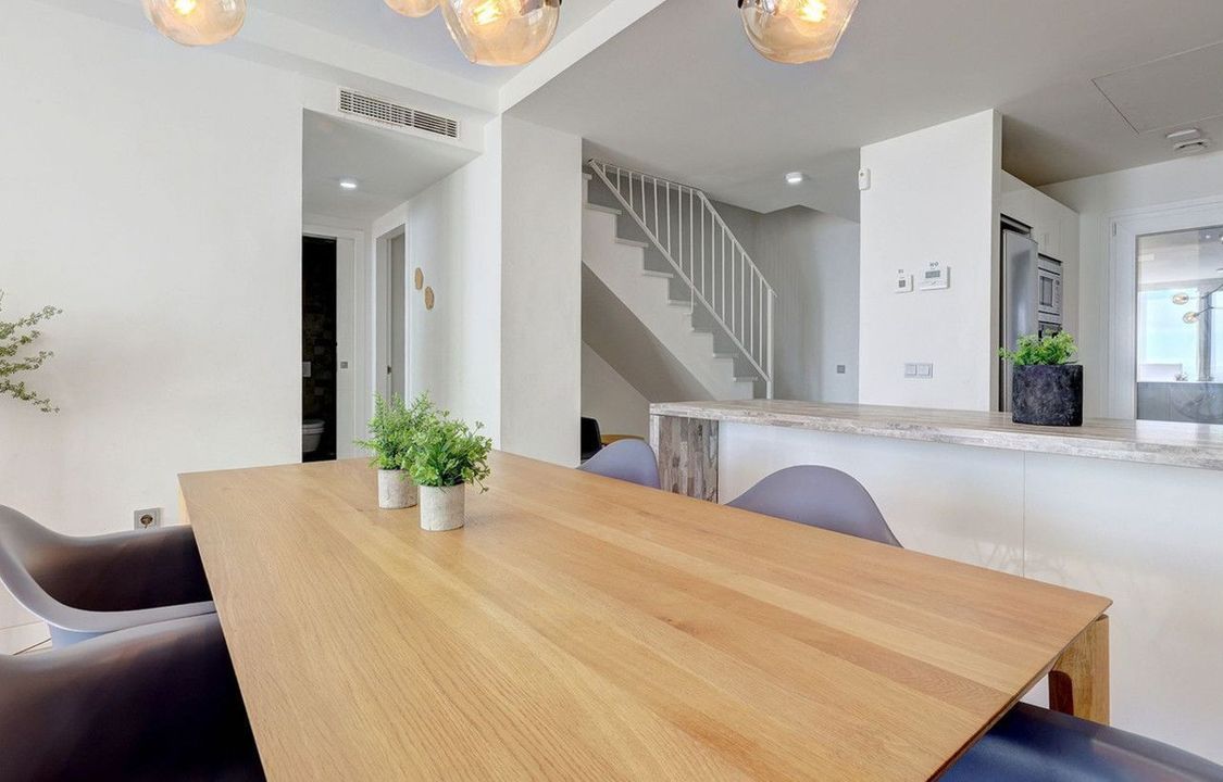 This elegant duplex penthouse enjoys stunning panoramic sea views and a prime location in Benalmádena, just a short drive from the beach and the picturesque village of Benalmádena Pueblo.
