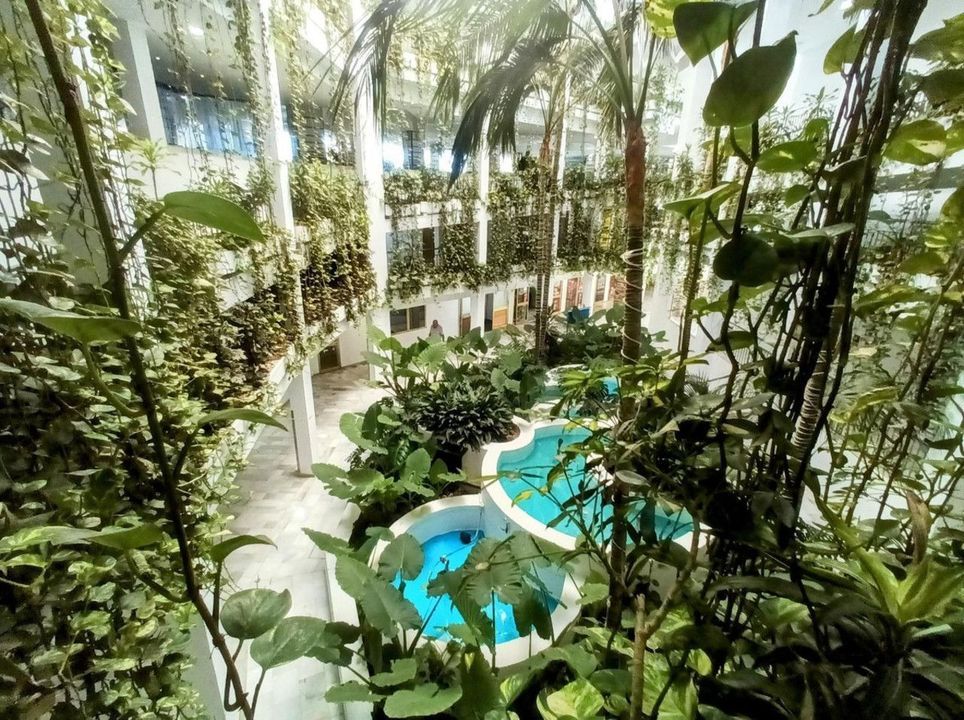 Het gebouw biedt uitstekende voorzieningen, waaronder een fitnessruimte, supermarkt, 24-uurs receptie, zelfbedieningswasserette, stomerijdienst, restaurant en een speelkamer met biljarttafels. Open gemeenschappelijke parkeerplaatsen zijn beschikbaar voor bewoners en gasten, daarnaast is er een ruim parkeerterrein direct buiten de poorten van het complex.