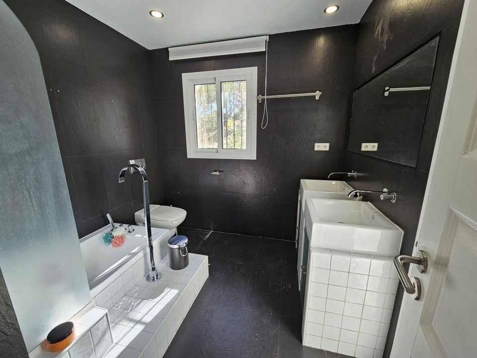 With 1091 square meters, this plot is the perfect canvas for the beautiful home that rises above it. The home itself is a masterpiece of design and comfort, it is distributed over two levels and consists of a spacious entrance hall, five bedrooms each with its own bathroom, a large living-dining room with a terrace from which you have beautiful views of the sea and the garden and finally a magnificent fully equipped main kitchen and a second kitchen.