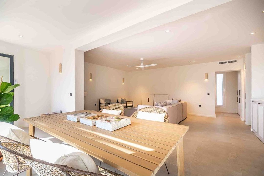 De ruime woonkamer met open keuken zet meteen de toon: licht, luchtig en gemaakt voor een moeiteloze dagelijkse routine. Grote ramen laten het zonlicht binnen en verbinden de woning direct met het zuidwestgerichte terras – een verlengstuk van de woonkamer waar je het hele jaar kunt genieten van warme middagen, gouden zonsondergangen en de zachte mediterrane bries.