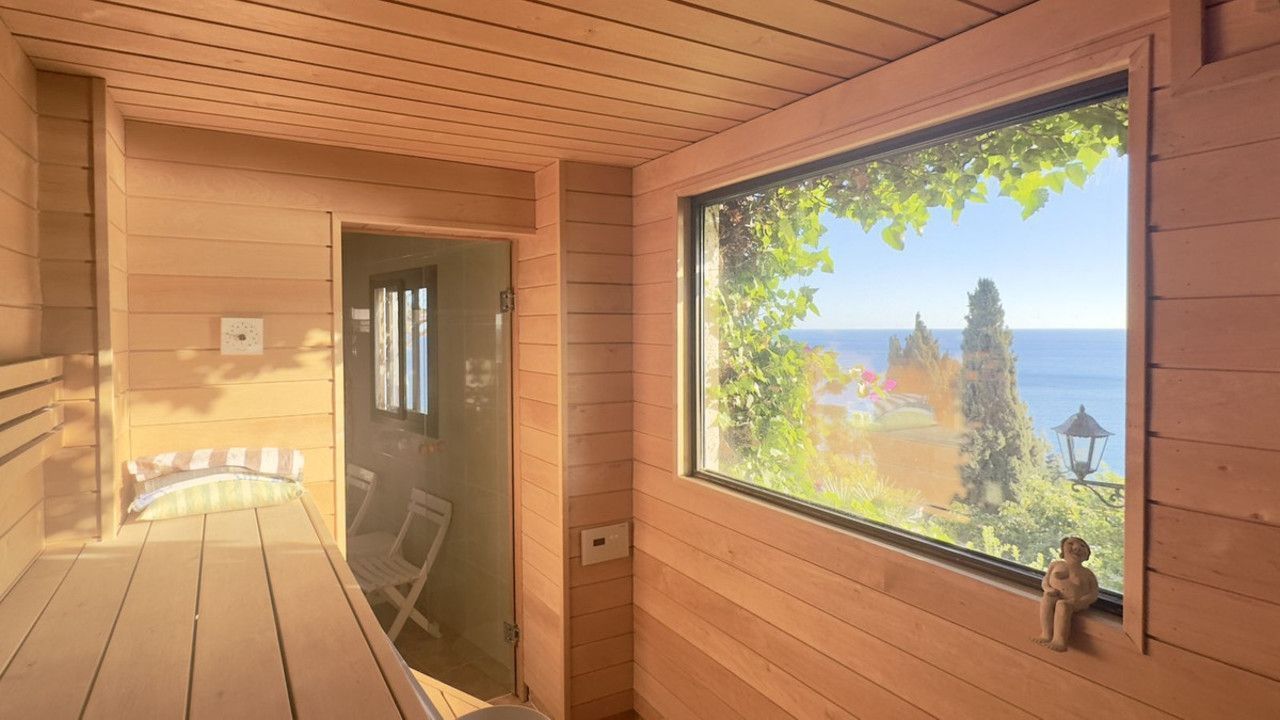 The lower level is dedicated to relaxation and wellbeing, featuring a sauna, additional living area, bedroom and direct access to a landscaped garden with jacuzzi.