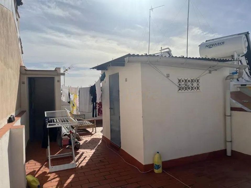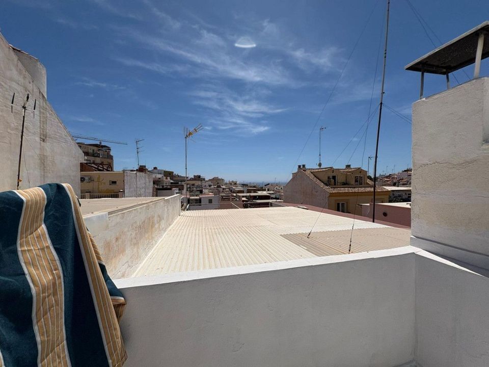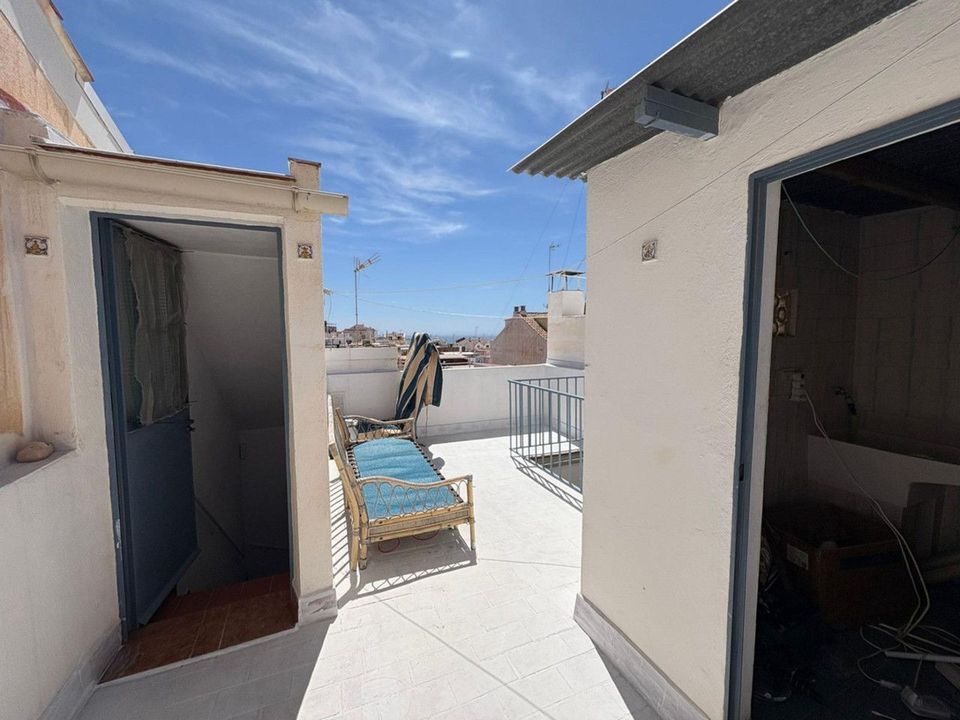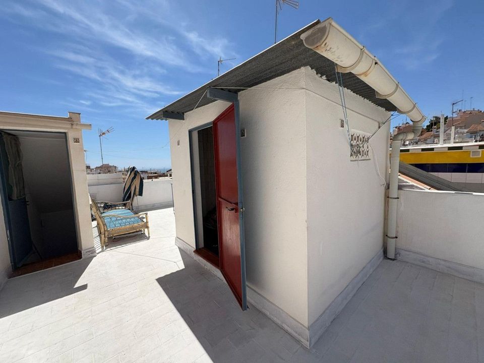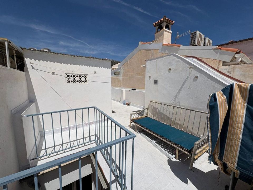 The property is distributed over two floors plus a spacious rooftop terrace. On the ground floor, you'll find one bedroom, a small bathroom, a cozy living room, and a functional kitchen with access to a small patio. The second floor features two bright bedrooms and a full bathroom. The terrace, approximately 45 m2, includes a laundry room and boasts beautiful sea views, making it the perfect space to relax, enjoy outdoor dining, or create a chill-out area.