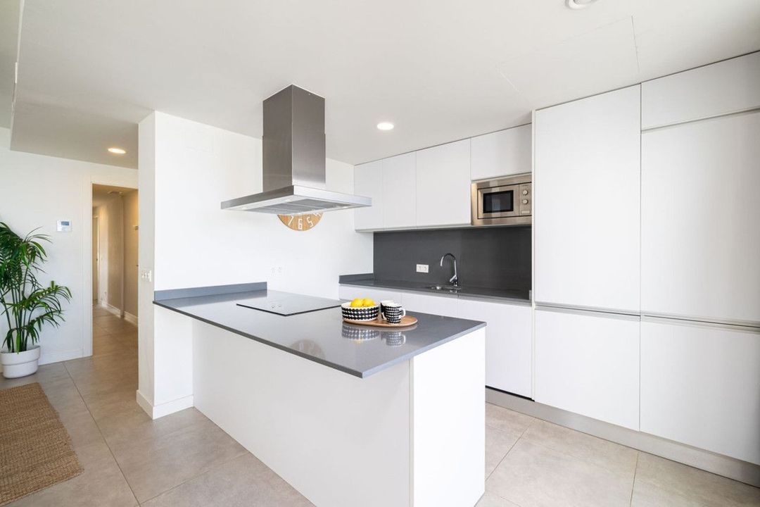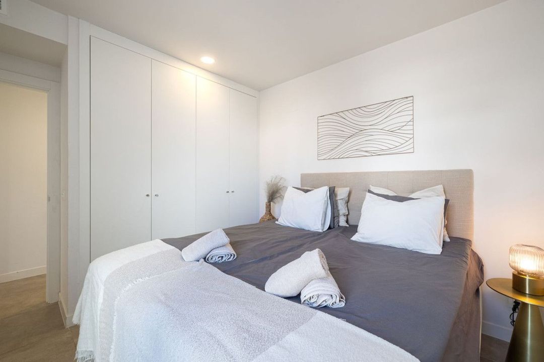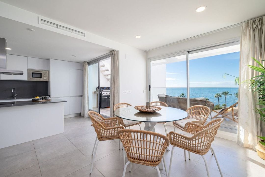 The bright, open-plan interior features a seamless blend of the dining area, living room, and fully equipped kitchen with integrated appliances, all opening onto a terrace perfect for starting your day admiring the blue Mediterranean. For ultimate outdoor enjoyment, you have your own private rooftop terrace, ideal for sunbathing or organising unforgettable dinner parties with breathtaking views.