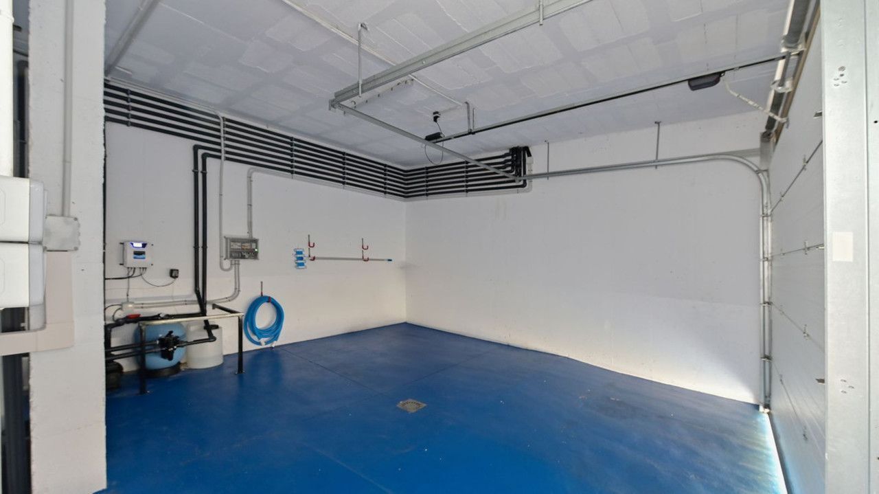 The closed garage accommodates two vehicles, includes an electric car charging point, and provides direct access to the interior of the house from the basement, offering extra convenience. Pedestrian access to the property is via a private street with an exterior gate, ensuring total privacy.