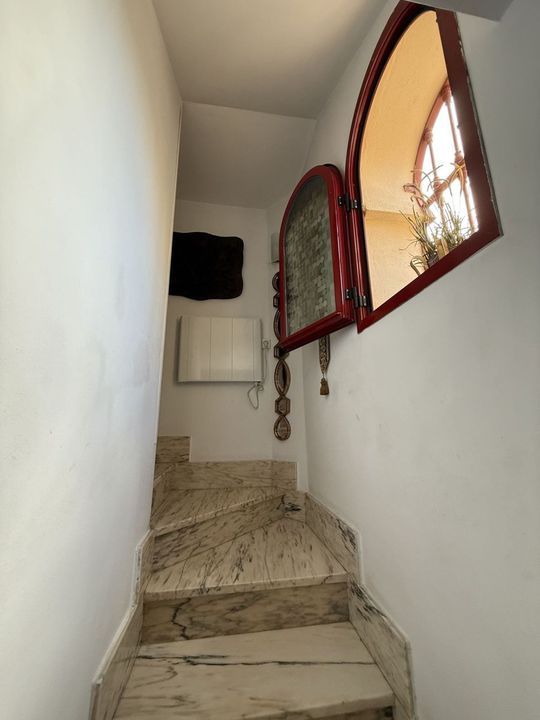 Upstairs from the main level there are another two bedrooms with bathrooms and each one with a terrace. From a larger one you have partial view of the Mediterranean Sea