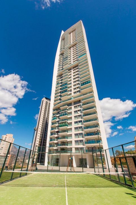 Op de 29e verdieping van Torre Lugano bevindt zich dit appartement, met indrukwekkend panoramisch uitzicht over de zee en de stad Benidorm. Het appartement heeft een oppervlakte van 89m² met 2 slaapkamers, 2 badkamers, een woonkamer en een groot terras, waar men van de zon en het uitzicht kan genieten. Er zijn ook 2 privé-parkeerplaatsen en 1 opslagruimte in het gebouw. Het appartement is op het volle zuiden gericht. Het is zeer goed onderhouden en heeft een nieuwe Daikin airconditioning met geïntegreerde WIFI uit 2024. Het gebouw Torre Lugano is het 2e hoogste gebouw van Benidorm met in totaal 42 verdiepingen en een hoogte van 158m.