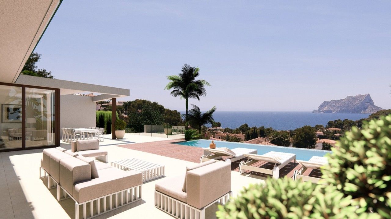 Zeezichtvilla te koop in Benissa: moderne nieuwbouwvilla in Baladrar met 4 verdiepingen, zwembad, lift en zeezicht. Luxe woning met allure nabij de Middellandse Zee.