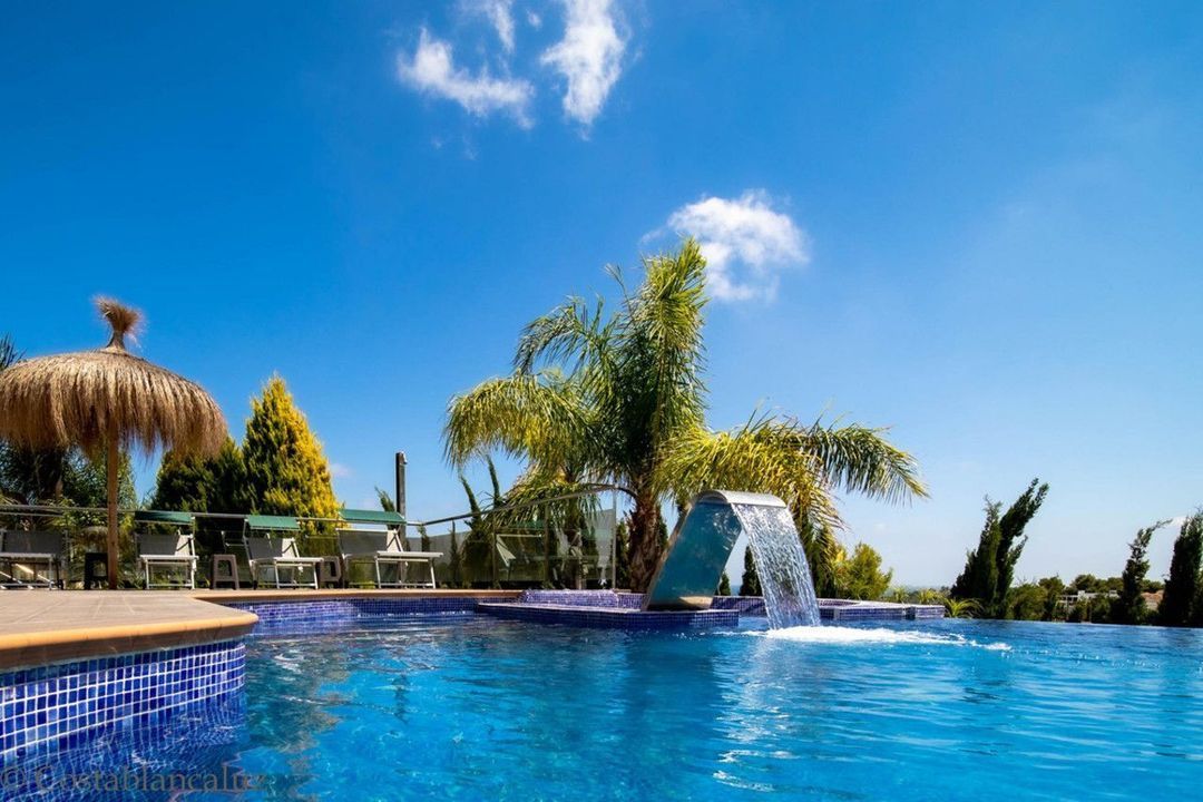 Deze ruime en luxe villa is gelegen in de urbanisatie La Fustera, binnen 10 minuten rijden naar Calpe centrum en 15 minuten van Moraira. Gelegen nabij het charmante strand van La Fustera. Zodra u het terrein betreedt kunt u direct de schaal van deze villa zien. Bij binnenkomst wordt u verwelkomd door een keizerlijke trap en een in het oog springende marmeren vloer die zich rondom de villa uitstrekt. De woonkamer is enorm en bestaat uit 3 aparte zithoeken zijnde een eettafel, zithoek en in de hoek een gezellige lounge met een gashaard. Het terras buiten is perfect in balans met veel ruimte voor al uw vrienden en familie om te zonnen of te ontspannen. Op het terras vindt u een overdekte eethoek en een zithoek samen met een buitenkeuken.Het buitenzwembad heeft een ingebouwde jacuzzi en een waterval met een prachtig uitzicht over het landschap tot aan de Middellandse Zee. De villa beschikt over een SPA met fitness, Sauna, binnenzwembad en jacuzzi om ook in de wintermaanden van de premium lifestyle te genieten.Beneden komt u binnen in een zeer stijlvolle bar welke een perfecte plek is om te dansen of een feest te organiseren. Naast de bar is een volledig zelfstandig appartement met een eigen ingang, die gebruikt kan worden voor vrienden, familie of een maid.Tenslotte is er de bovenste verdieping met 4 grote slaapkamers, allen met een eigen badkamer en een kantoor, waarvan de master met een inloopkast, een privéterras en een bad. Het kantoor aan huis deelt een groot terras met 2 van de slaapkamers en biedt u een prachtig uitzicht tijdens het werken. Deze villa heeft alles wat u nodig heeft om het hele jaar door te wonen!