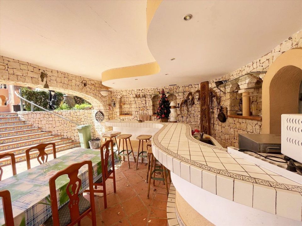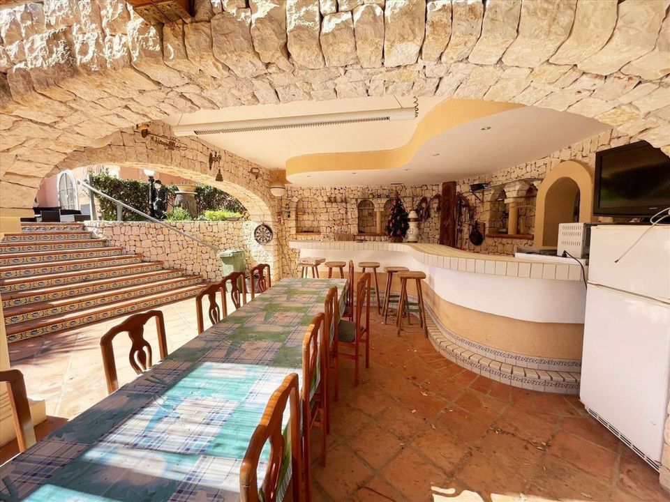 This 400 m2 villa is located on a large 1,850 m2 plot, facing southeast, just 450 m from the beautiful coves of Benissa, 600 m from the Aldi supermarket, 5.5 km from Calpe, 8 km from Moraira, and 76 km from Alicante airport.