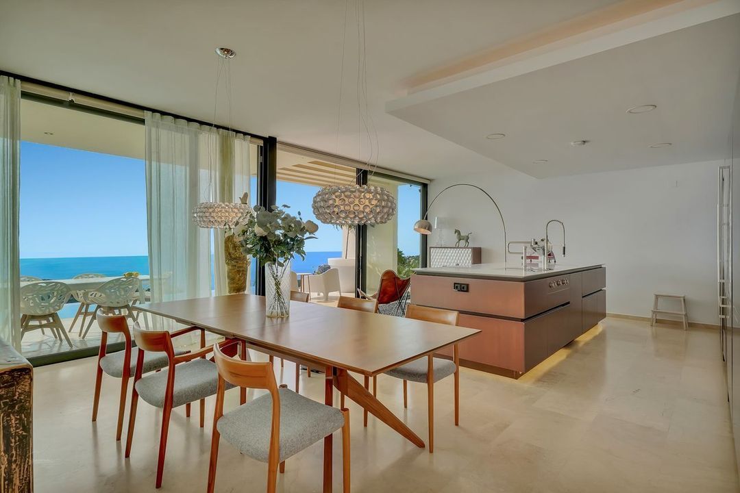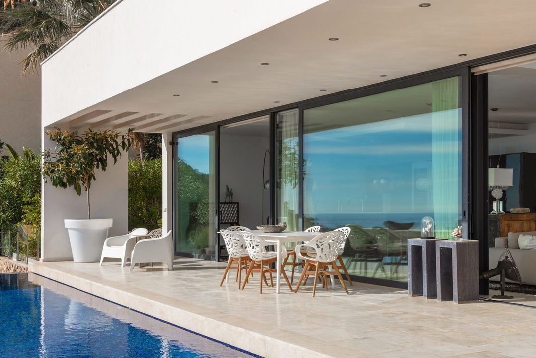 This exceptional designer luxury villa offers breathtaking 180º sea and coastal views, as far as Ibiza and Formentera on a clear day, and is located in the prestigious residential area of Las Dalias, Cumbre del Sol.