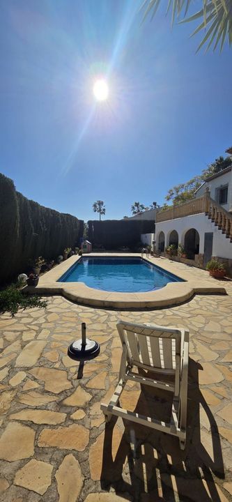 This charming traditional Spanish-style villa is offered in the quiet and private area of Les Fonts, in Benitachell, just a 10-minute drive from Jávea, where you will find beautiful beaches, shops, restaurants, and all amenities.