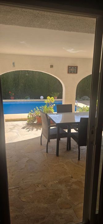 The main house, located on the upper floor, has 3 bedrooms, 2 bathrooms, a kitchen, and a bright living room. On the lower level, next to the pool, there is a separate guest apartment with 2 bedrooms and 2 bathrooms, offering complete comfort and privacy.