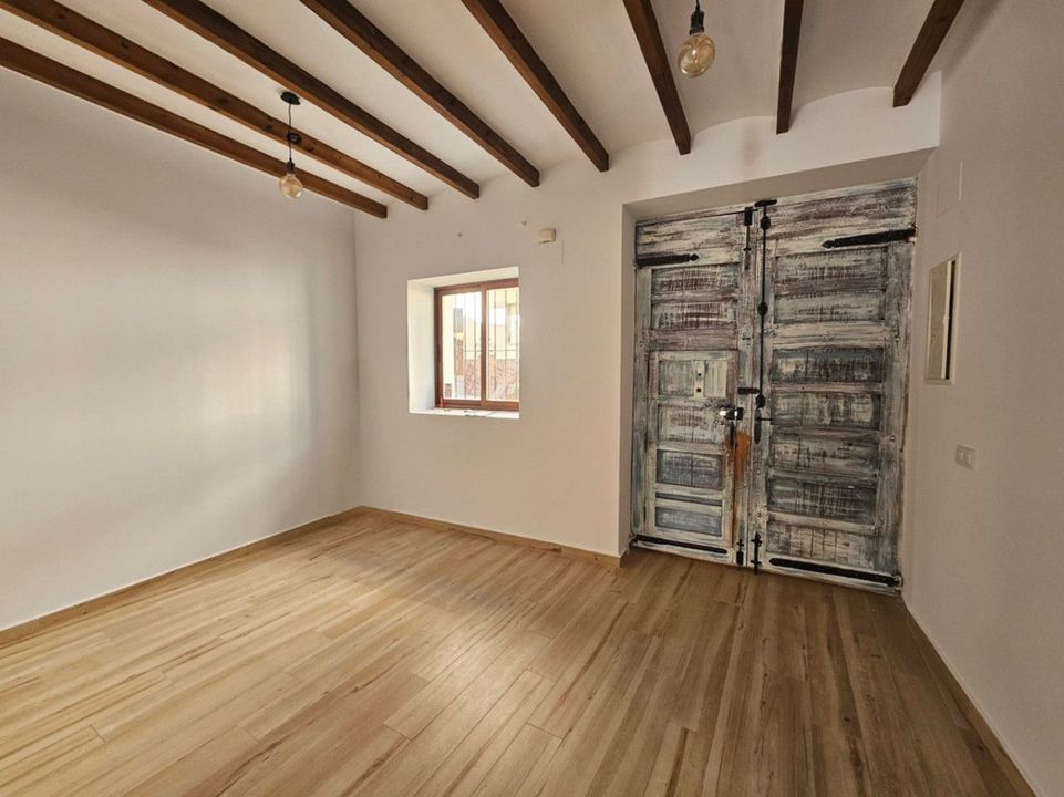 Traditional village house, fully renovated in 2025, preserving its old essence. Its central location allows easy access on foot to shops, restaurants, and services. The house is distributed over three floors. On the ground floor, we have the living-dining room with a wood burner, perfect for those cold winter days, a guest toilet, and a fully equipped open kitchen with access to a good-sized patio. On the first floor, we find two double bedrooms, each with access to cozy balconies with open views, and a full bathroom with a shower. On the second floor, there is a spacious master bedroom with hot/cold air conditioning, a large study/office, and a large private terrace, ideal for outdoor dining, sunbathing, or enjoying the views of the village , the valley, and with the sea and the Peñón de Ifach in the background. The entire house has double-glazed windows with shutters and beautiful wooden beams in the ceilings.
