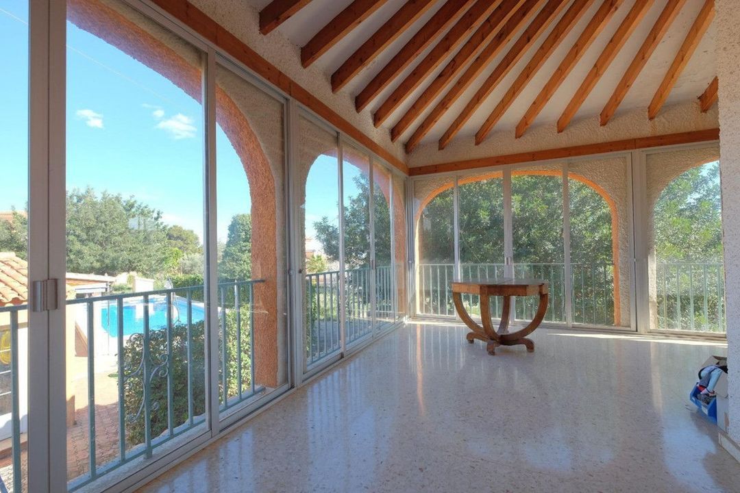 Villa van 426m2 met een groot perceel van 2.752m2 nabij het centrum van Calpe.~~Deze spectaculaire villa biedt vele mogelijkheden: ideaal voor een groot gezin, verhuur als toeristische accommodatie of zelfs om te bouwen tot een charmant hotel. De ligging is prachtig, op slechts 500 meter van het centrum van Calpe en op 1,5 km van de stranden; Supermarkten en scholen liggen op minder dan 1 km afstand, zodat u ze gemakkelijk te voet kunt bereiken. In Calpe vindt u geen huis dat zo ruim is en zo dicht bij alle voorzieningen ligt.~~De villa is momenteel verdeeld in twee gebouwen, een hoofdgebouw van 391m2 en een gastenverblijf naast het zwembad met een oppervlakte van 35m2.~~De indeling van het hoofdgebouw bestaat uit twee onafhankelijke verdiepingen met een identieke indeling: grote woon-eetkamer met open haard, 4 tweepersoonsslaapkamers, 2 badkamers, aparte keuken en een groot glazen terras met een oppervlakte van ongeveer 40m2. Op de begane grond zijn de keuken en een van de badkamers gerenoveerd. Op de bovenste verdieping bevindt zich een zeer privé solarium met een prachtig uitzicht op de Peñón de Ifach en de bergen rondom Calpe.~~De indeling van het gastenappartement bestaat uit een woon-eetkamer, een open keuken, een slaapkamer en een badkamer met douche. Dit appartement beschikt over een groot overdekt terras met toegang tot het zwembad van 13x5m2, waar u samen met anderen van een gezellige tijd kunt genieten. Er is ook een barbecue in de buitenlucht en er zijn tuinen.~~De villa is volledig op het zuiden gericht en heeft de hele dag zon. Er is een makkelijke overdekte parkeergelegenheid, u kunt er probleemloos ongeveer 8 auto's parkeren. U zult geen parkeerproblemen hebben als u vrienden en familie uitnodigt.~~Een bijkomend voordeel van deze villa is dat er de mogelijkheid bestaat om het perceel van 2.752 m2 af te splitsen om een tweede huis te bouwen, er is voldoende ruimte beschikbaar.