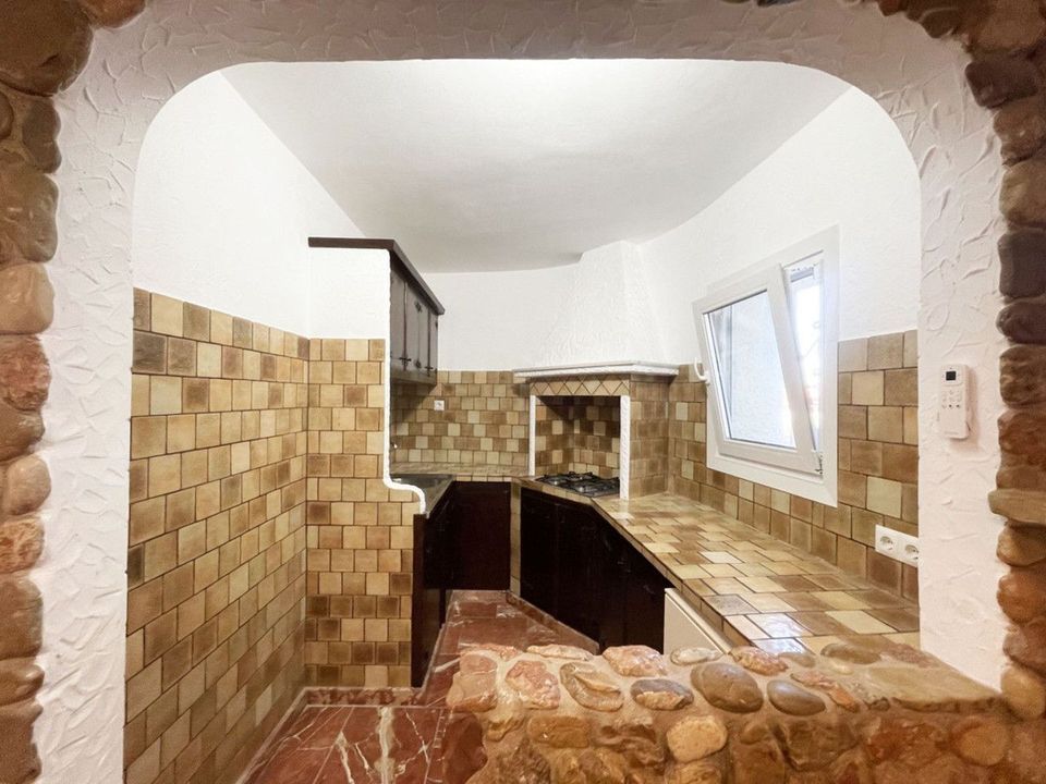 Woonruimte met open keuken, 1 slaapkamer en 1 badkamer.