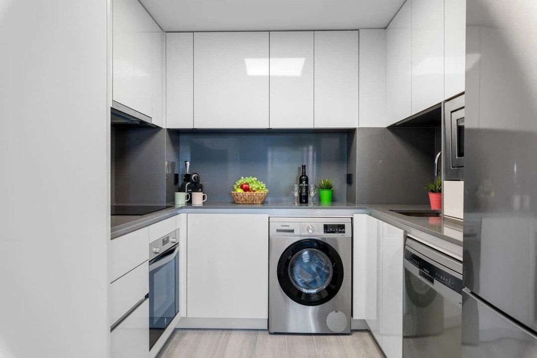 Het appartement is modern en licht ingericht en biedt een ruime woon-eetkamer met directe toegang tot een groot terras – perfect om te ontspannen met uitzicht op zee en de zoutmeren van Calpe. De open keuken is volledig uitgerust met keramische kookplaat, vaatwasser, koelkast en wasmachine.