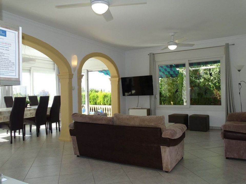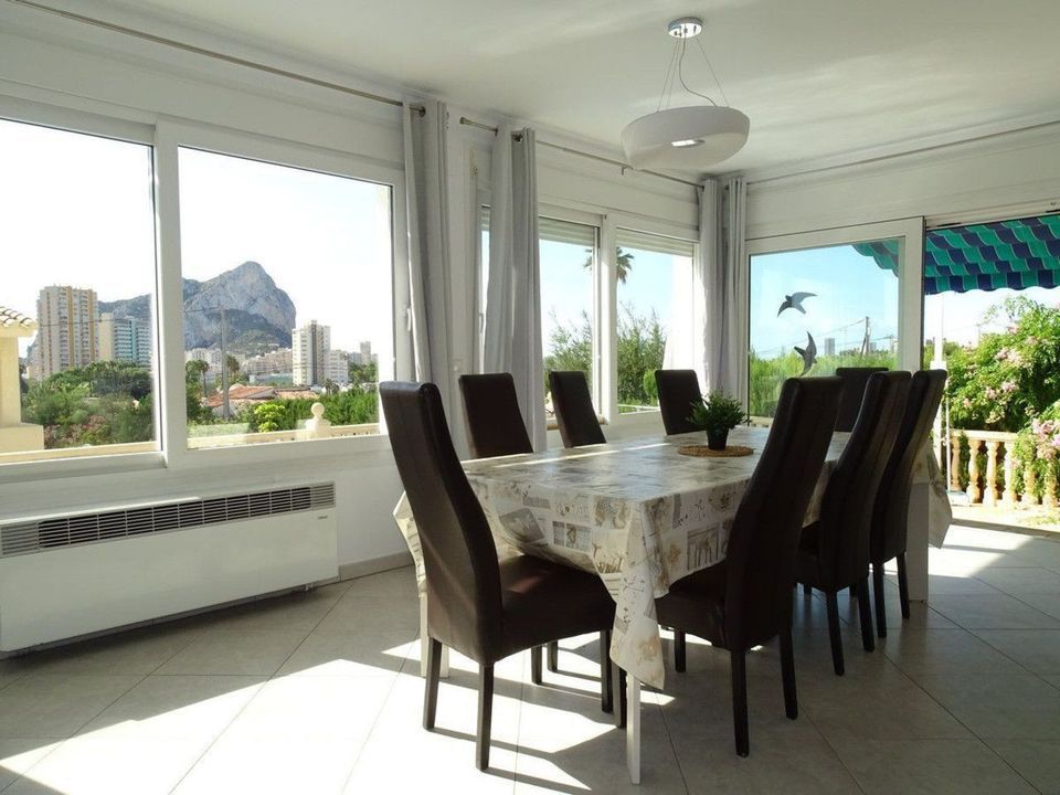 Located on a 785 m² plot, this 200 m² villa offers the perfect environment to enjoy comfort and tranquility. The property boasts stunning views of the sea, the Peñón de Ifach, and the salt flats, making it a unique place to live or vacation. Its exterior features an 8x4 m² pool surrounded by extensive landscaped areas, creating an ideal space for rest and relaxation. Additionally, the villa has its own water well, allowing for better water usage for the garden and other needs.