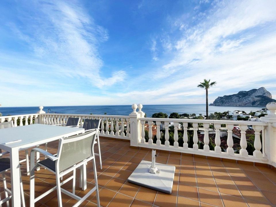 Deze spectaculaire woning onderscheidt zich door het indrukwekkende 180 graden zeezicht en uitzicht op de Peñón de Ifach. Gelegen op een bevoorrechte locatie, op slechts 300 m van Cala Mallorquí en 400 m van de jachthaven Les Bassetes. Deze recent gerenoveerde luxe villa is slim verdeeld in 3 onafhankelijke appartementen op een perceel van 800 m².