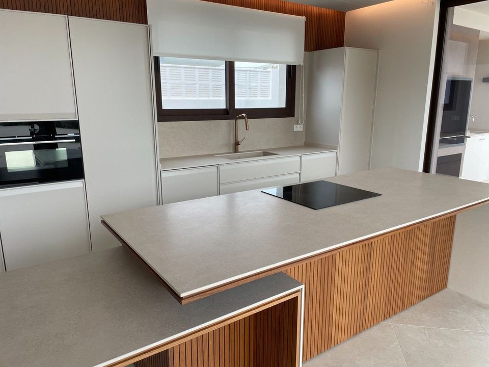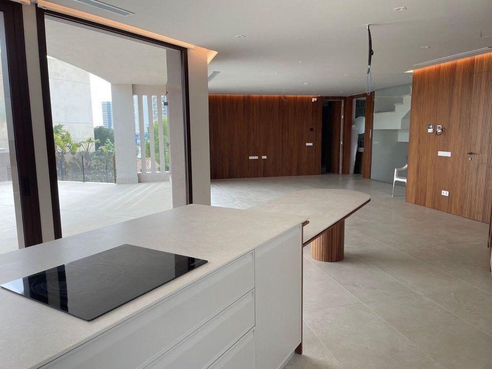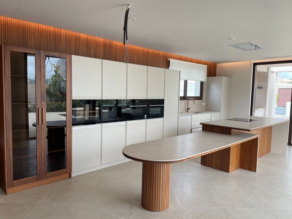 Ontdek uw nieuwe thuis in Calpe met deze spectaculaire moderne villa in de gegeerde urbanisatie Enchinent. Rustig gelegen en toch op korte afstand van de zee, de Salinas, winkels en het centrum, combineert deze nieuwbouwvilla perfect rust en bereikbaarheid. Gelegen op een perceel van 890 m² met een totale bebouwde oppervlakte van 375 m² verdeeld over twee hoofdverdiepingen en een kelder, beschikt de woning over vijf ruime slaapkamers en vijf stijlvolle badkamers. Met panoramisch zicht op de Middellandse Zee, de iconische Peñón de Ifach en de Salinas, en dankzij de zuidoriëntatie geniet u hier van maximale lichtinval.