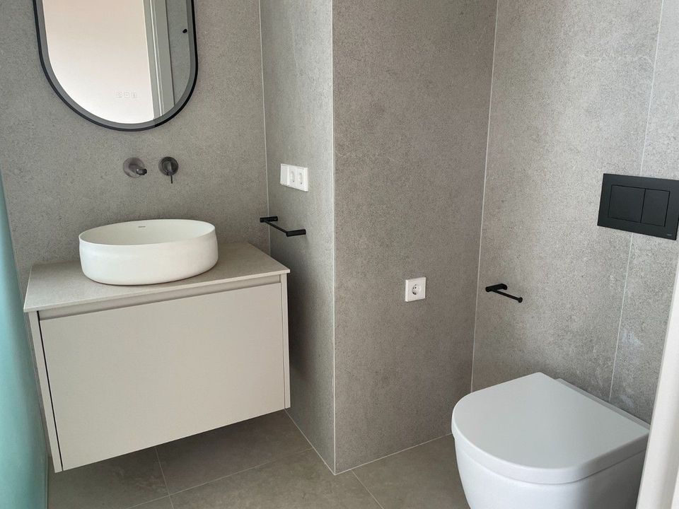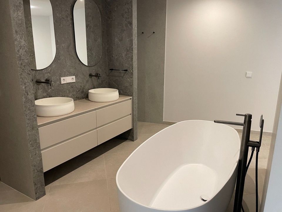 Bij binnenkomst wordt u verwelkomd in een lichtrijke en ruime leefruimte met grote raampartijen die het uitzicht prachtig kaderen. De open indeling verbindt woonkamer en eetkamer op harmonieuze wijze. De moderne designkeuken is volledig uitgerust en combineert functionaliteit met elegantie.Op de twee hoofdverdiepingen bevinden zich vier ruime slaapkamers, elk met een eigen stijlvolle badkamer en-suite. Hoogwaardige materialen, porseleinen vloeren, vloerverwarming, airconditioning via kanalen en directe en indirecte LED-verlichting zorgen voor een hedendaags en comfortabel woonklimaat.In de kelderverdieping bevindt zich naast een veelzijdige ruimte – ideaal als fitness, bioscoopruimte of wijnkelder – ook een zeer ruime vijfde slaapkamer met open badkamer en ligbad, perfect voor gasten die graag wat extra privacy hebben.