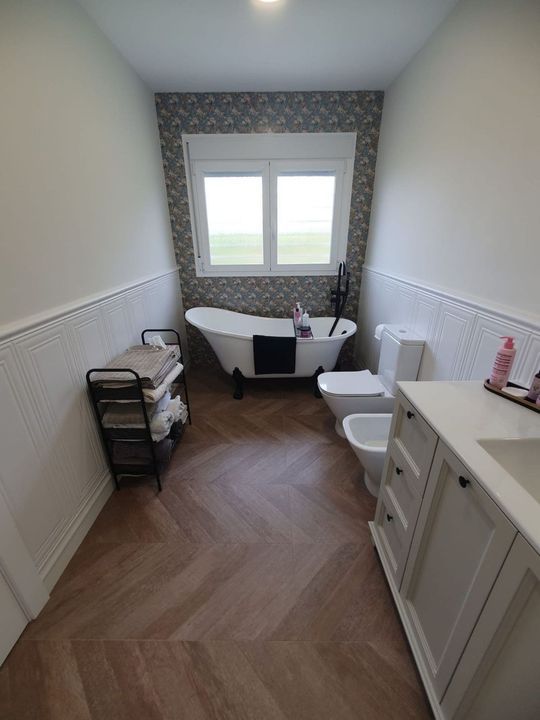Bij het betreden van de voorkant van het huis heeft u een mooi veranda-gebied dat uitkijkt op het zwembad, met voldoende ruimte voor een lounge- of eethoek. Bij binnenkomst in het huis komt u in een ruime hal met nieuwe keramische vloeren met houtlook, die doorlopen in alle kamers van het huis. Er is een grote woonkamer met een moderne 180 cm elektrische open haard, airconditioning en ruimte voor een eethoek indien gewenst. De twee grote tweepersoons slaapkamers hebben beide airconditioning. Eén slaapkamer heeft een prachtige en suite badkamer met een elegant bad en douche in Victoriaanse stijl. Aan de achterzijde van het huis is er een aparte gerenoveerde familiebadkamer. U heeft een prachtige, ruime, moderne keuken met werkbladen, kasten en apparatuur van topkwaliteit. Alle kamers hebben nieuwe moderne witte deuren, dubbele beglazing met rolluiken en vliegenschermen.