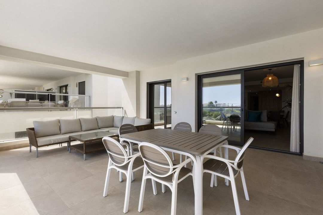 Large sliding doors lead out to the impressive 40m2 terrace, which features discreet storage space and extends your living outdoors, ideal for enjoying the Mediterranean climate.